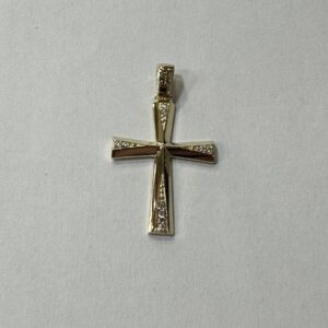 Γυναικείο δαχτυλίδι σταυρός με μοντέρνο σχεδιασμό σε κίτρινο χρυσό δεκατεσσάρων καρατίων με ζιρκόν.