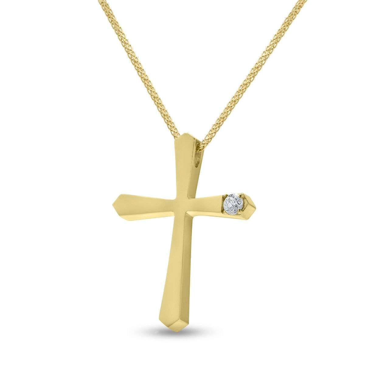 Γυναικείος σταυρός από κίτρινο χρυσό Κ14 με ζιρκόν