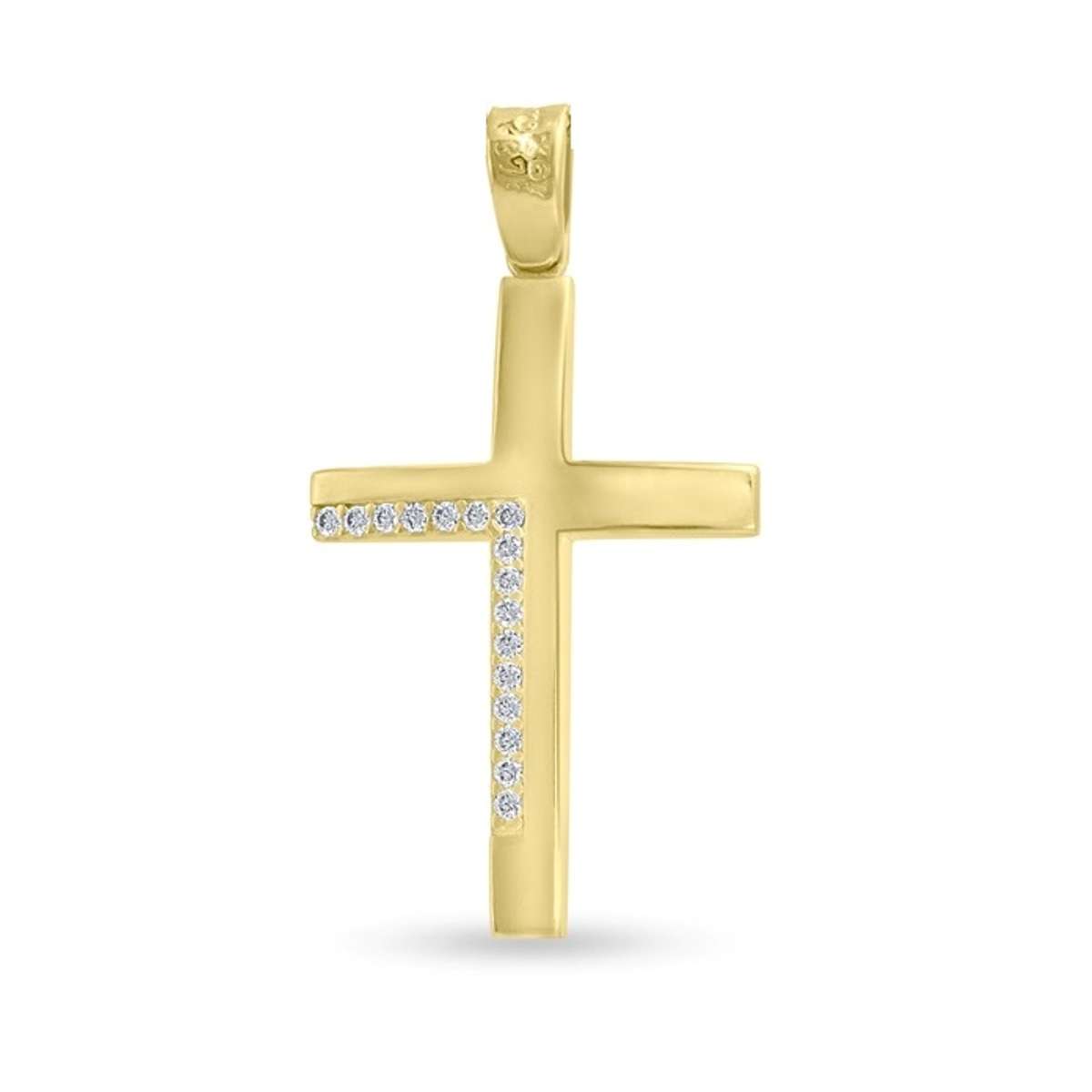 Γυναικείος σταυρός FaCad’oro σε κίτρινο χρυσό Κ9 με ζιρκόν