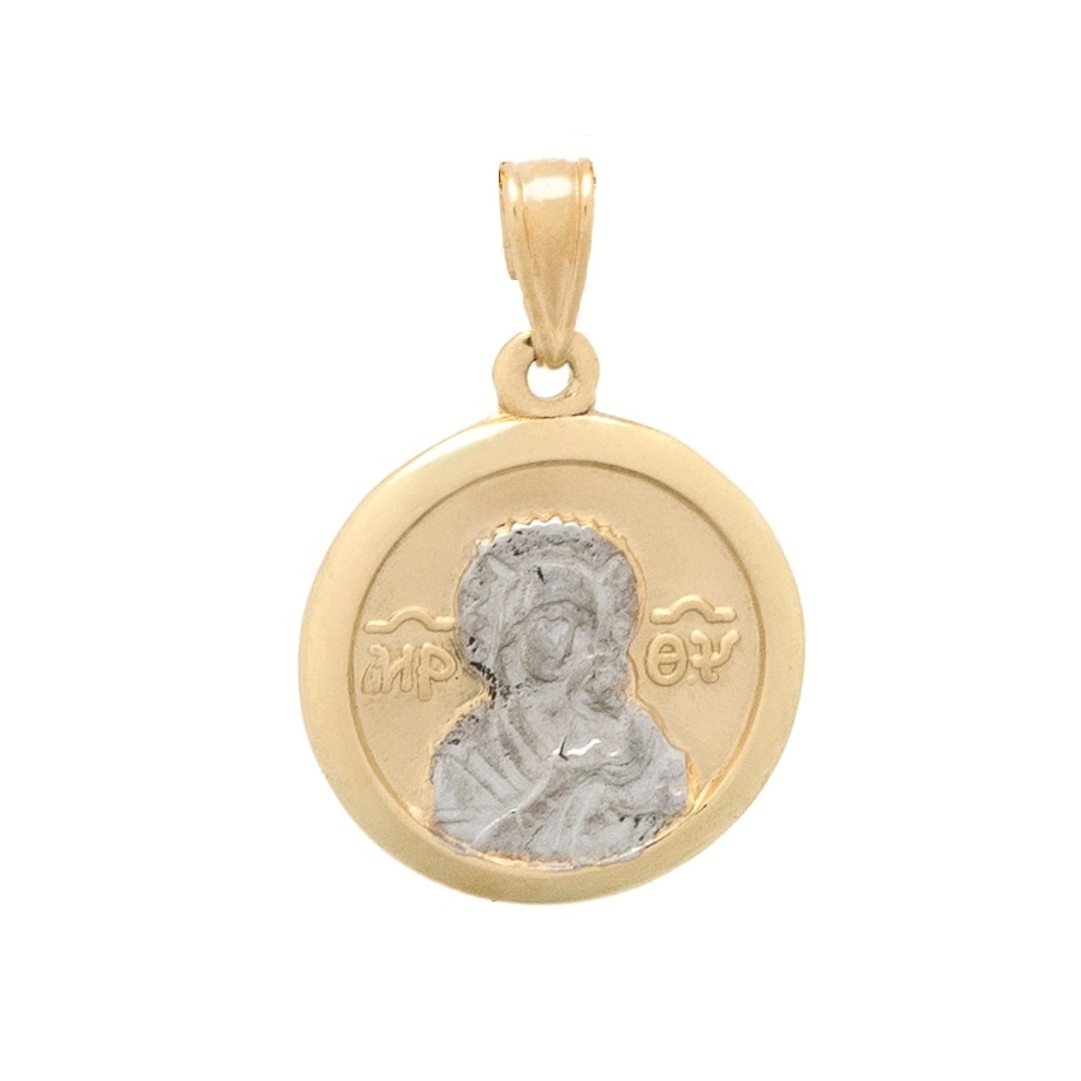 Κολιέ Φυλαχτό Παναγία και Χριστός από Κίτρινο & Λευκό Χρυσό Κ14 ΠΦ0379