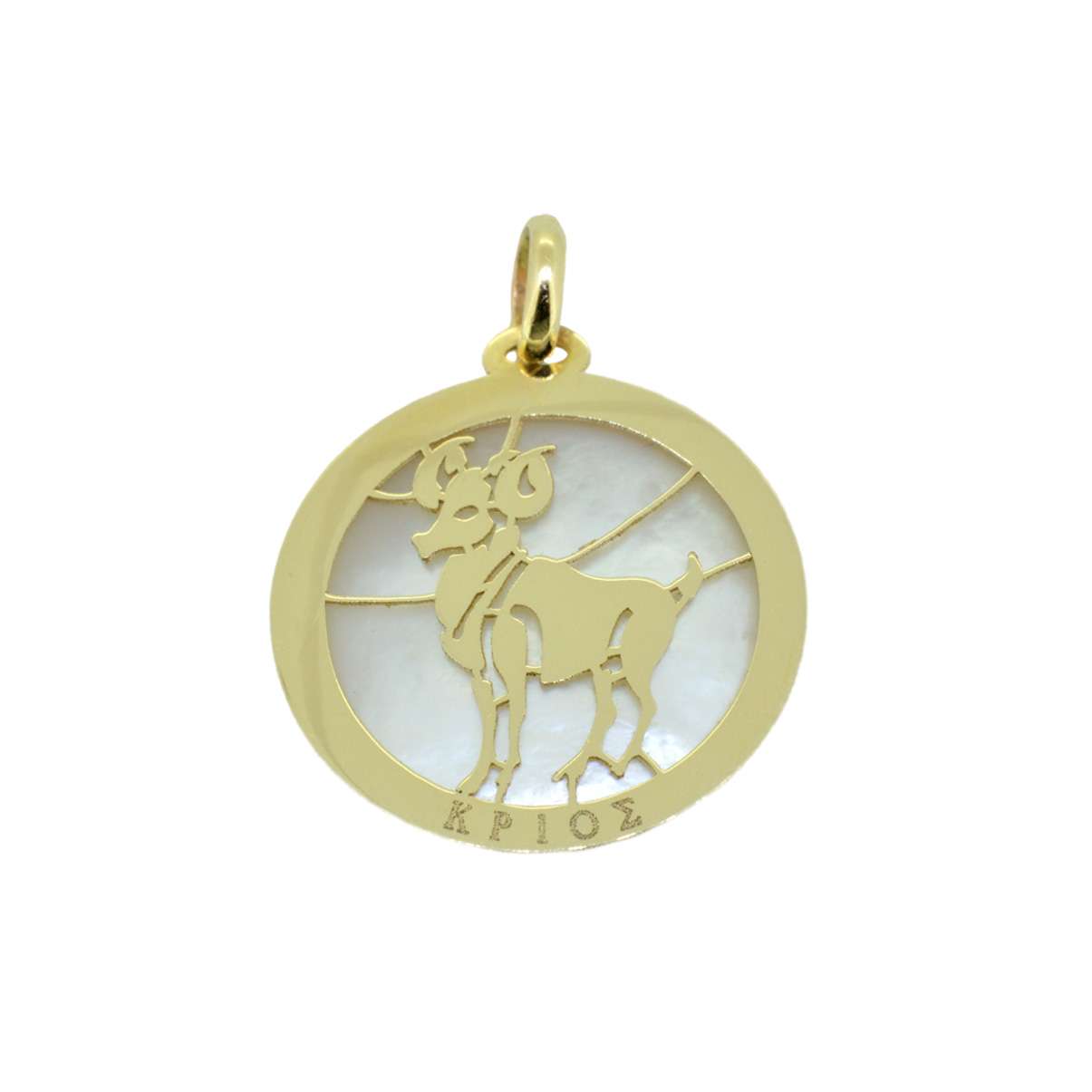 Κολιέ Ζώδιο Κριός σε Κίτρινο Χρυσό Κ14 με Φίλντισι ΚΡ2359