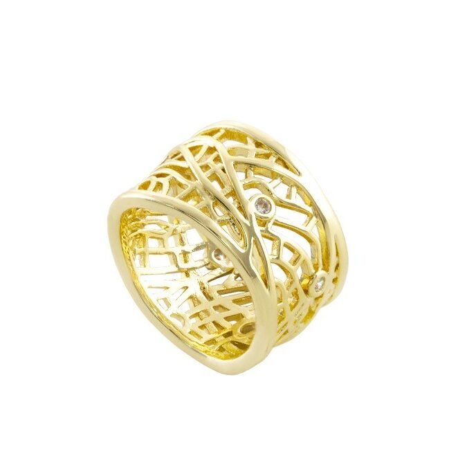 Δαχτυλίδι Lace μεταλλικό επίχρυσο διάτρητο με λευκά ζιργκόν