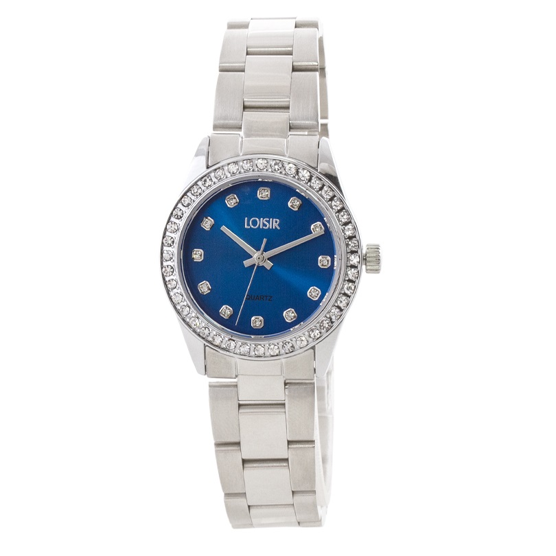 Loisir Ρολόι Hippy με Ατσάλινο Μπρασελέ & Μπλε Καντράν & Λευκά Κρύσταλλα 11L03-00555