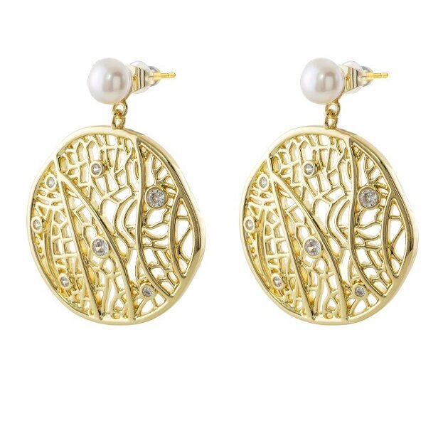 Σκουλαρίκια Lace μεταλλικά επίχρυσα με διάτρητο στοιχείο πέρλα και ζιργκόν