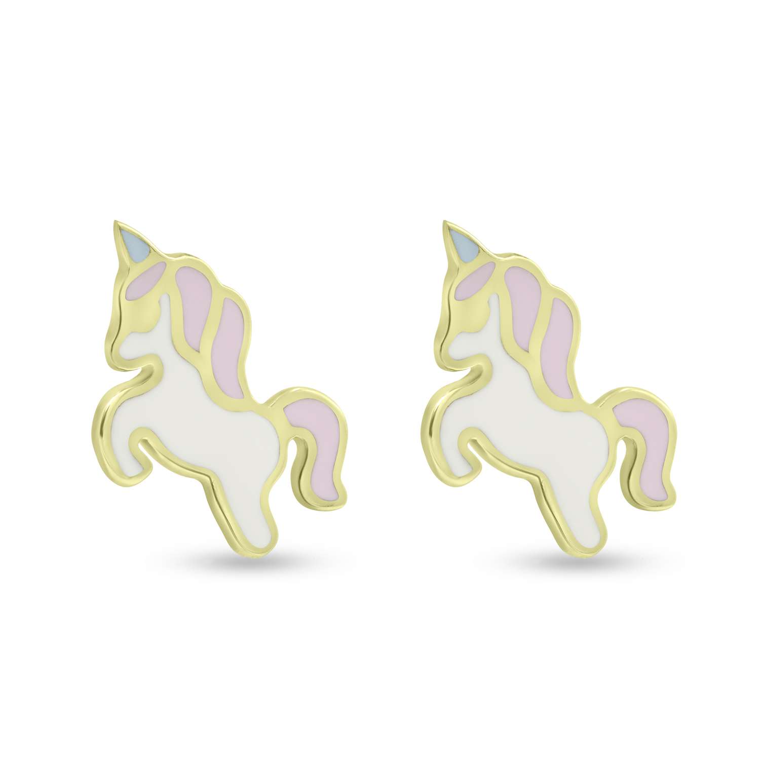 Παιδικό καρφωτό σκουλαρίκι μονόκερος, για κοριτσάκια από κίτρινο χρυσό εννέα καρατίων με σμάλτο