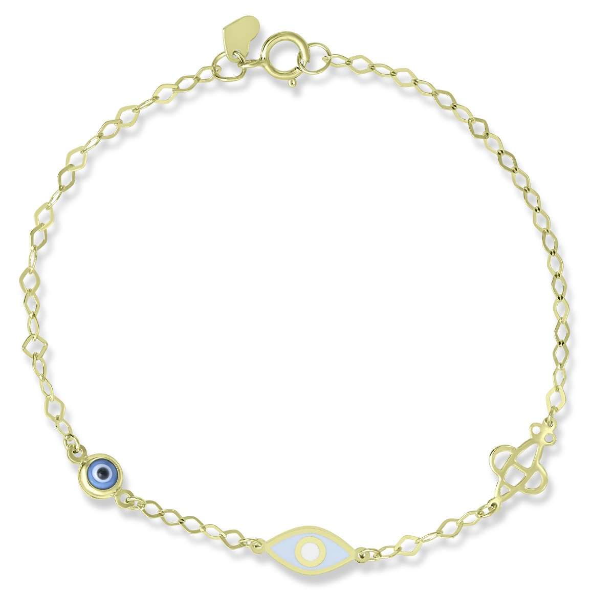 Παιδικό Βραχιόλι Αεροπλανάκι & Ματάκι από Επιχρυσωμένο Ασήμι ΑΠΒ0192