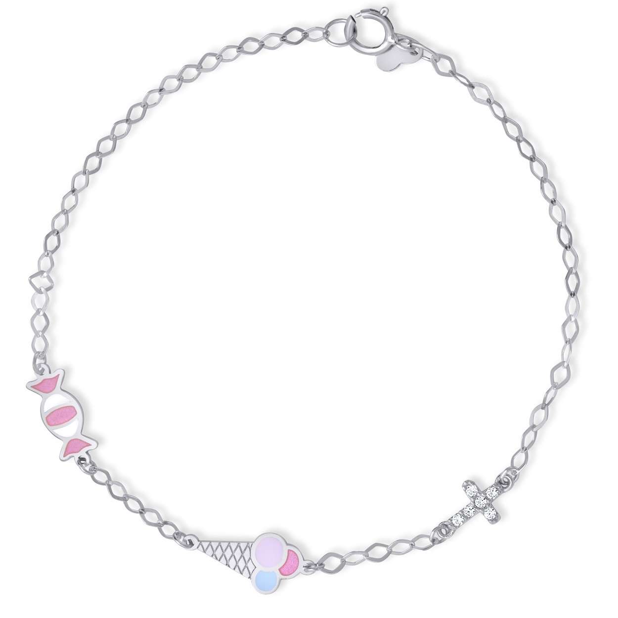 Παιδικό Βραχιόλι Παγωτό, Καραμέλα & Σταυρουδάκι από Επιπλατινωμένο Ασήμι με Σμάλτο & Ζιρκόν ΑΠΒ0195