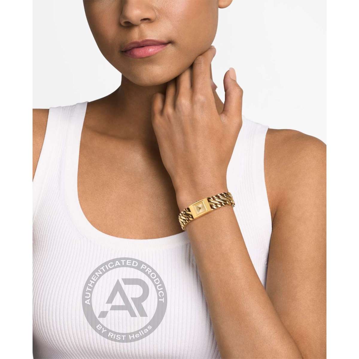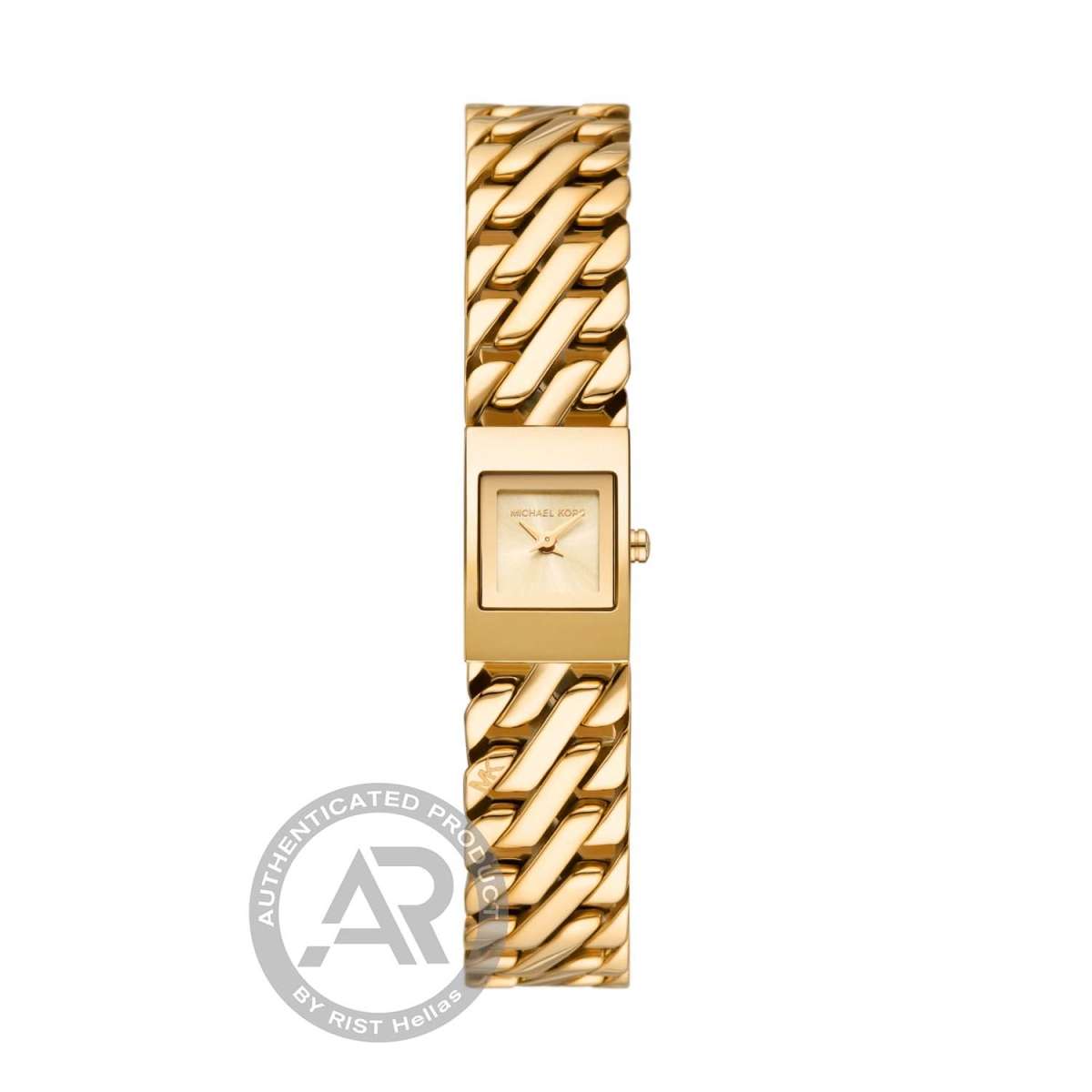 Ένα εντυπωσιακό γυναικείο ρολόι Michael Kors από κίτρινο επιχρυσωμένο ανοξείδωτο ατσάλι και χρυσό καντράν