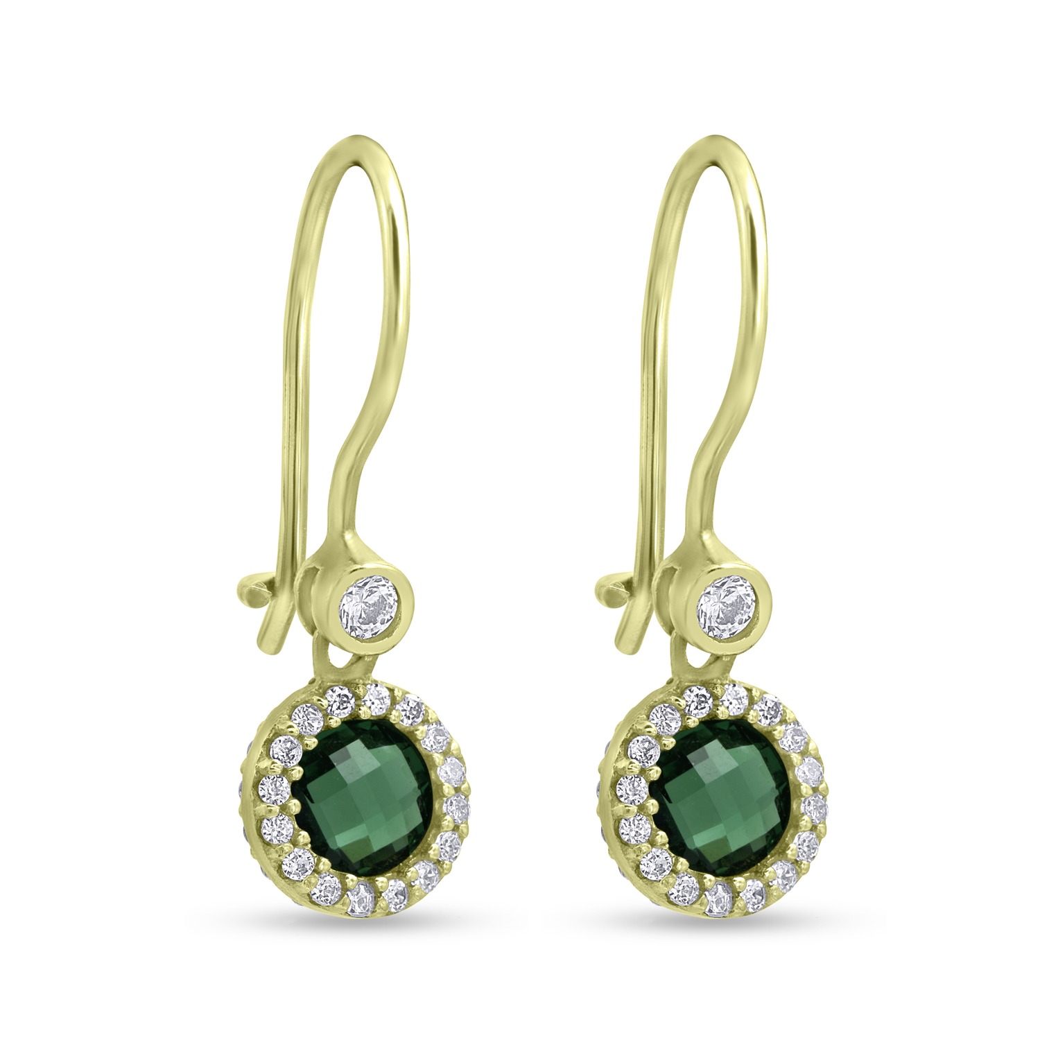 Ένα ξεχωριστό ζευγάρι κρεμαστά σκουλαρίκια ροζέτα με πράσινο κέντρο και λευκά ζιρκόν δεμένα σε κίτρινο χρυσό δεκατεσσάρων καρατίων!