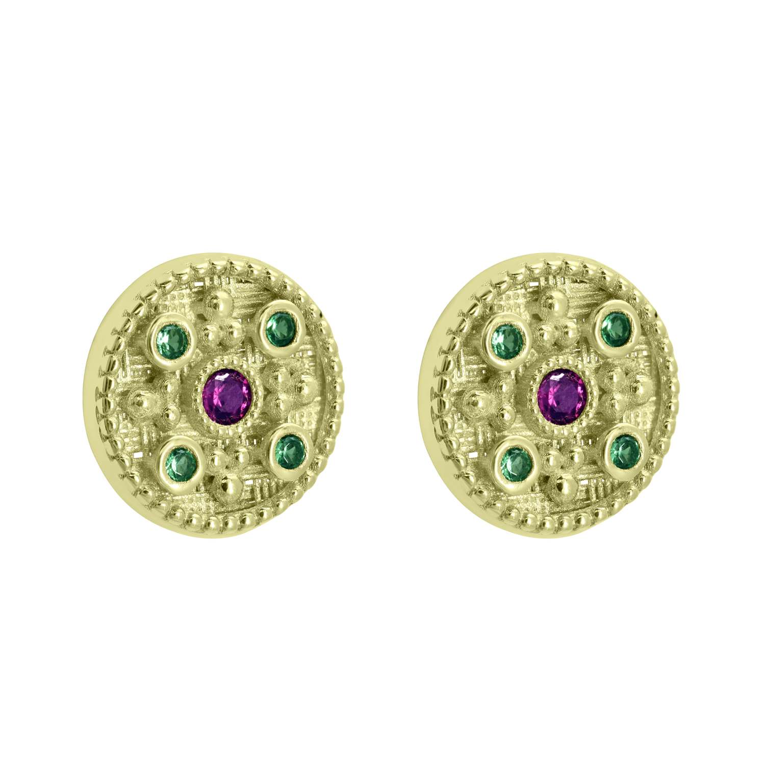 Ένα εντυπωσιακό ζευγάρι καρφωτά βυζαντινά σκουλαρίκια με ζιρκόν δεμένα σε κίτρινο χρυσό εννέα καρατίων!