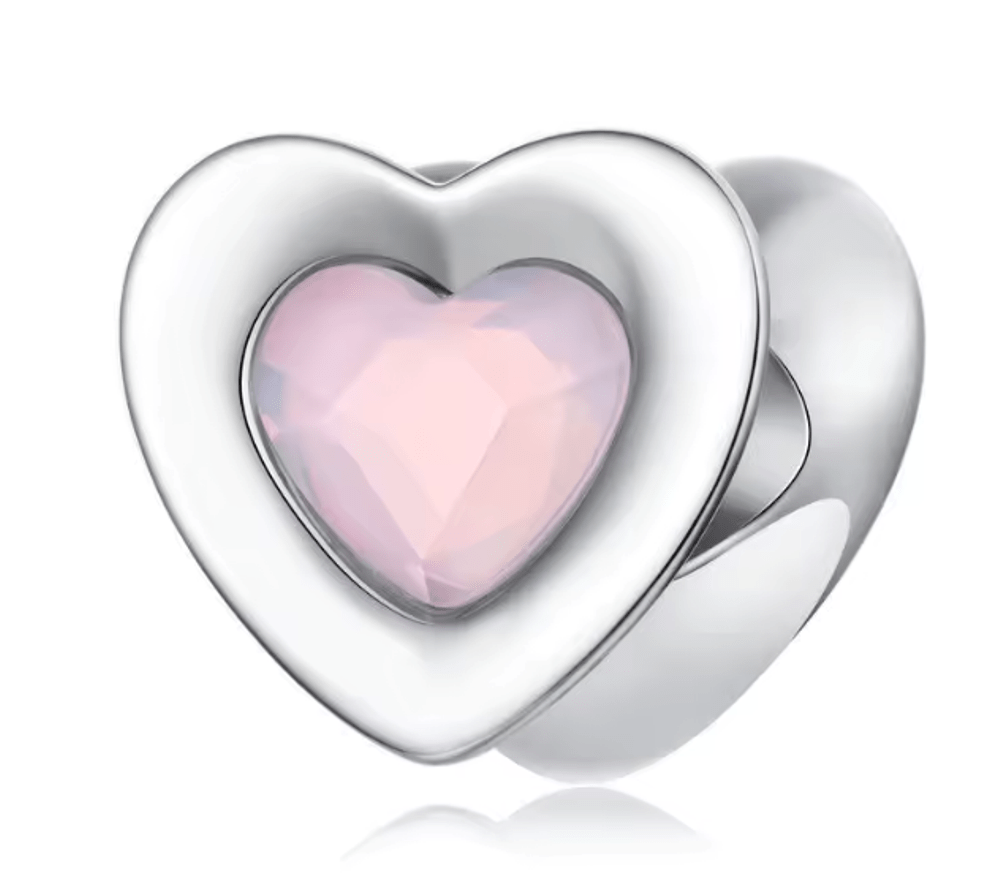 Σύμβολο Silver Me, Pink heart with silver για βραχιόλι από επιπλατινωμένο ασήμι 925 με ζιρκόν